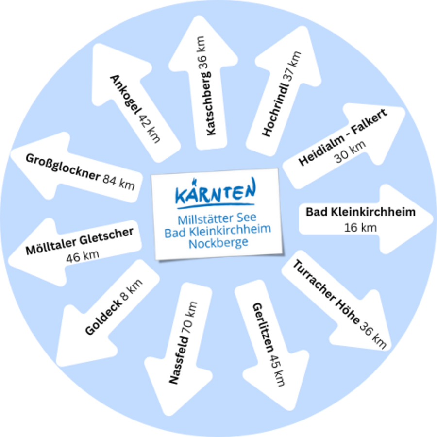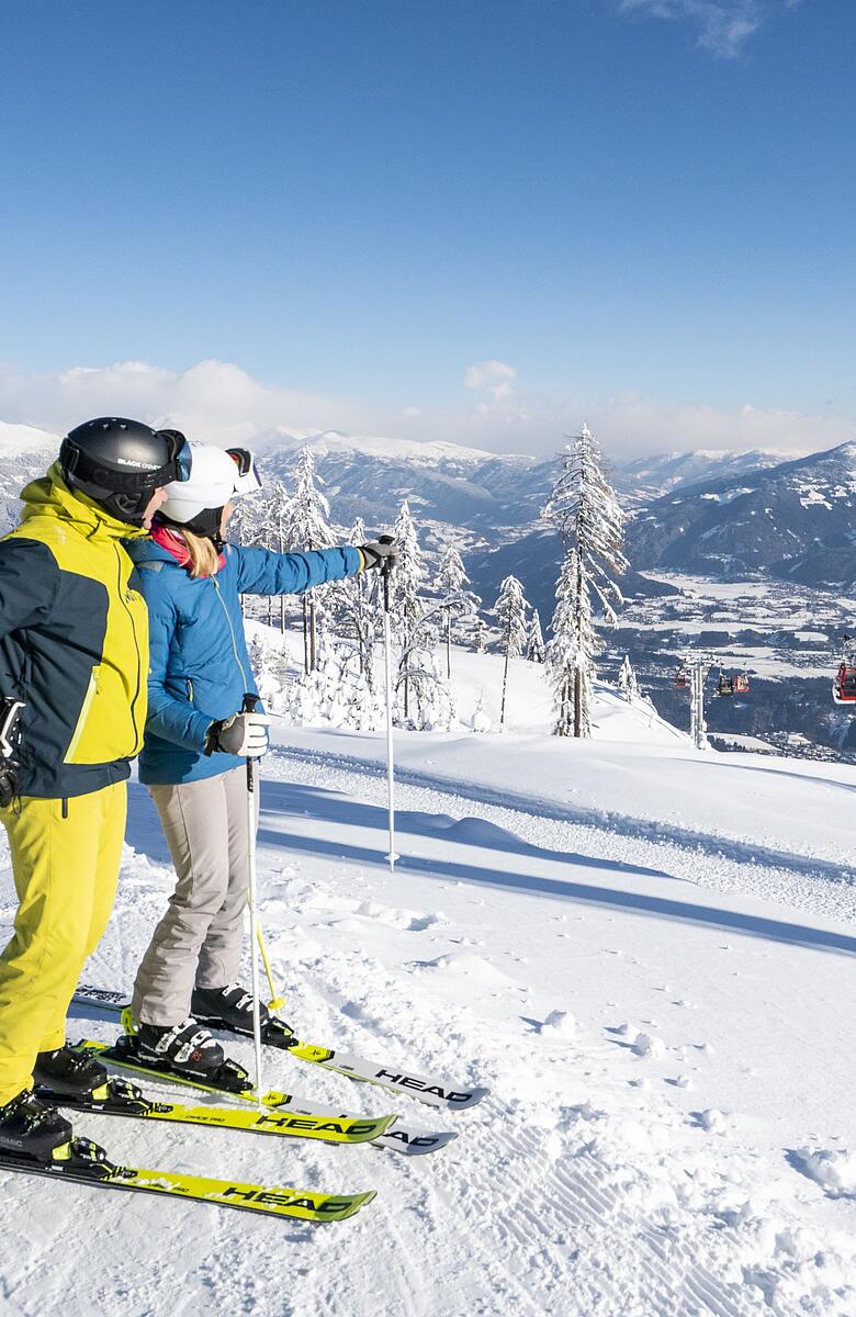 Carosello sciistico Lago Millstätter See: vacanze sciistiche con lo skipass - lo skipass carinziano apre 31 aree sciistiche in Carinzia e Tirolo Orientale. Dal lago alla pista in ~30 min: Goldeck, Bad Kleinkirchheim, Turracher Höhe. La varietà delle aree, i moderni impianti di risalita e il benessere sul lago dopo una giornata di sci creano la massima libertà con la minima pianificazione.